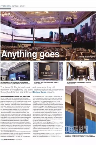 近日,東南亞專業雜志《PROAUDIOASIA》一則報道吸引了大家的注意。文中對上海三思為馬來西亞吉隆坡瑞吉酒店(St.RegisKL)設計安裝的LED顯示屏做了詳細介紹與專業報道。