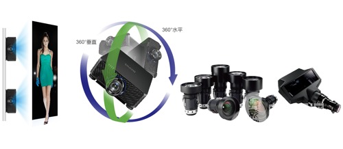 明基激光工程投影機系列可以實現安裝應用“隨心所欲”,適用于任意角度安裝,例如360度旋轉與側立投影,還擁有8組超短焦到長焦不同類型可選鏡頭,提高投影機安裝使用的廣泛性和靈活性。超廣角電動變焦鏡頭讓使用更便利,水平/垂直鏡頭移位功能讓安裝彈性更大,使全向調整投影變得輕松簡單。
