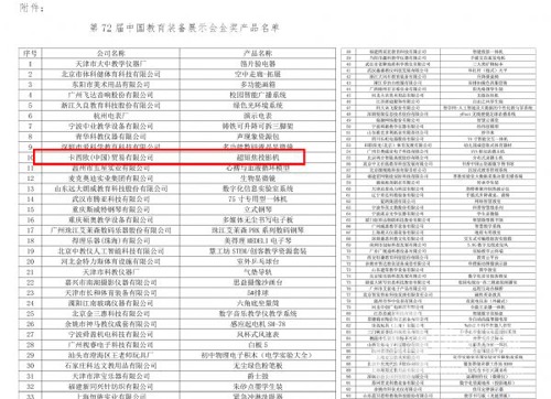 2017年5月7日-9日,卡西歐參展第72屆中國教育裝備展示會,參加由中國教育裝備行業協會主辦,中國教育裝備網承辦的金獎產品評選活動。評選活動采取網上申報、網上初選、展會現場評選、終審等方式進行評獎。很榮幸,卡西歐新品超短焦投影機XJ-UC350WN在展會期間就獲得入圍產品的殊榮。