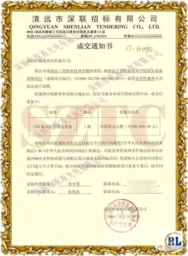 中標方銳凌光電公司是一家集研發、生產、銷售、服務為一體的LED顯示屏高新技術企業。公司主營室內外LED顯示屏整屏、LED顯示模組,和各種與顯示屏配套的鐵質、鋁質、化纖等箱體。在小間距高清顯示屏和戶外表貼高亮顯示屏方面具有國內領先技術。質量體系完善,先后獲得"ISO9001、3C、14001、CE、RoHS、ZRX等品質管理體系認證。公司在led顯示屏的合理性、節能方面取得多項專利證書,為打造優質產品,以及優勢發展奠定了扎實的基礎。