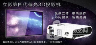 立影第四代不閃式偏光3D投影機,結合了萬達IMAX 3D顯示技術,不閃健康,單機雙鏡頭專利,是萬元內3D效果最佳、操作最簡單的3D投影設備;適合家用娛樂、商用辦公、小型3D影院、KTV營利、多媒體教育等多元化場所。