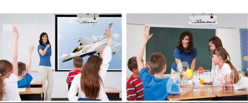 一般投影機在使用時,老師在臺前講課容易受到光線干擾,投影畫面很容易被遮擋。DX825ST與DX808ST采用短焦鏡頭,短距離可投射大熒幕,解決了授課時光線直射眼睛的問題,讓老師在講臺上的空間更大,更安全舒適,同時也能減少老師或學生在課堂上互動時擋住畫面的情況出現。