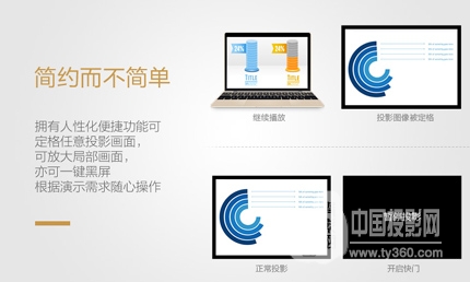 無(wú)線投影功能:通過(guò)選配無(wú)線模塊,輕松實(shí)現(xiàn)Windows筆記本電腦、IOS設(shè)備及Android設(shè)備無(wú)線投影。 Presenter Light 1.0用于Windows筆記本,支持最多4臺(tái)電腦同時(shí)無(wú)線投影,圖片、視頻和文檔(包括PDF和PowerPoint文件)均可清晰、完美呈現(xiàn)