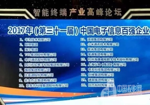 日前,在工業和信息化部的指導下,2017年中國電子信息百強企業發布暨智能終端產業高峰論壇在貴州遵義召開,會上發布了“2017年(第三十一屆)中國電子信息百強企業”。海康威視位列15,較2016年上升4位,這是公司繼2008 年首次參評以來,連續十年入選中國電子信息百強榜單。