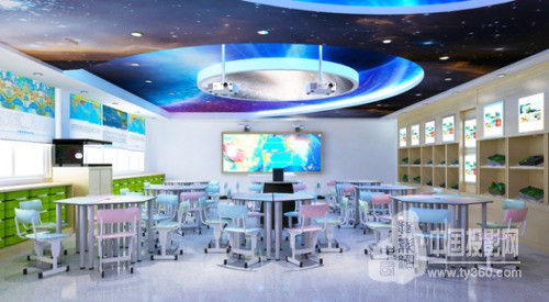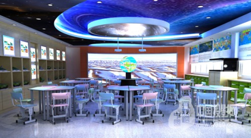 走進數字化地理專用教室就能被琳瑯滿目的星空圖、世界地形圖以及地形地貌模型等吸引。老師們可以將模型、語音講解、立體圖形等有機結合進行課堂講解,讓學生在具體可感的圖片、模具中領略大自然的神奇。