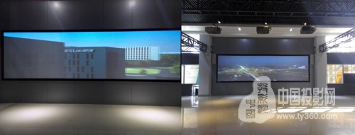 該企業前臺展廳使用3臺6500流明高亮度的工程投影機,以拼接融合的方式打造巨幅投影畫面,簡潔大氣,又極具科技感,充分體現了企業的信息化建設;該專業工程投影機提供7支高分辨率可交換鏡頭,應用雙燈泡投影系統,保持投影亮度。