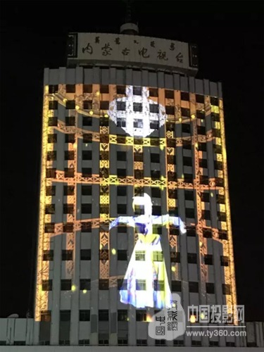 內蒙古電視臺大樓作為本次Mapping秀的主體項目,采用了DP 16臺三芯片投影機——Mercury 1860,總投影面積達1600平方米,通過與聲,光、電等科技手段的完美結合為我們帶來了一場強大的視覺盛宴。
