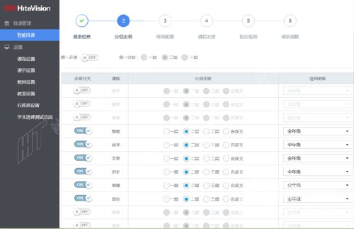 沒(méi)有復(fù)雜的模式和概念需要老師去學(xué)習(xí),只需要按照自然思維模式,通過(guò)6步操作,就能排出一個(gè)年級(jí)的走班課表,而且走班的課程、分層的數(shù)量、每個(gè)層級(jí)的分班數(shù)量、課時(shí)數(shù)、參與走班的班級(jí),全都可以自由選擇,走班排課就這樣變成了一件輕松自在的事情;而且更帥的是,排完課我可以自動(dòng)把學(xué)生分到各個(gè)班里去,省去讓學(xué)生選班帶來(lái)的麻煩,當(dāng)然如果學(xué)校想讓學(xué)生選班的話,我表示毫無(wú)壓力!先排后選,先選后排,先選課再排課再選班,通通不在話下。