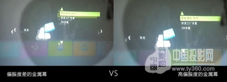 有些廠家為了縮減制作成本,采用不知名的幕料與低成本的噴涂技術,雖然都具有偏振屬性,但偏振度不高,接收到的畫面都會帶有重影,甚至還帶有色邊,請杜絕超低價格的金屬幕。