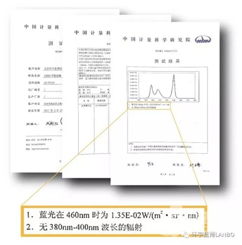 小間距LED顯示畫面過亮刺眼和藍光傷眼問題一直爭議比較大;LANBO平板投影表面有專利屏幕的保護,把點發光變為面發光以后,保證了畫面像素的連續性,使其達到了高亮且柔和的顯示畫面,并有效的阻止460nm處的藍光輻射問題,經第三方檢測報告顯示,其在460nm處的藍光輻射數值不足OLED電視的1/10,OLED電視一直號稱無藍光傷害,那么平板投影就更安全了。