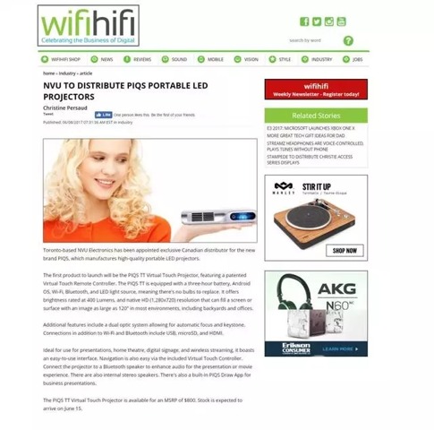 再到5月份被美國人氣爆棚的嘻哈歌手 Future和流行歌手ASAP Ferg推薦;6月份加拿大著名的科技時尚雜志《WiFiHiFi》給予了神畫TT一整版的報道,重點介紹了TT-P觸控投影的創(chuàng)新點;