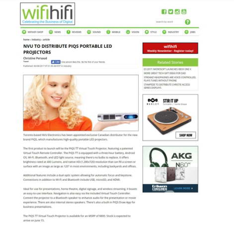 神畫TT-P觸控投影自2017年1月份成為美國CES展的明星產品之后,連續受到了歐美明星人物的點贊。5月份被美國人氣歌手Future和ASAP Ferg 推薦,6月份,加拿大著名的科技類雜志《WIFI HIFI》對TT-P觸控投影的創新功能做了一篇重點專題報告。