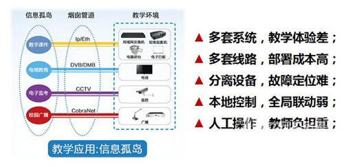 你的校園信息還在通過口口相傳,張榜公布,校園網通知等方式傳達嗎?已經進行信息化改造的校園同樣面臨電教設備管理、校園環境管理、數字廣播管理、校園安防系統等部門各自為政,信息共享不足的困境。