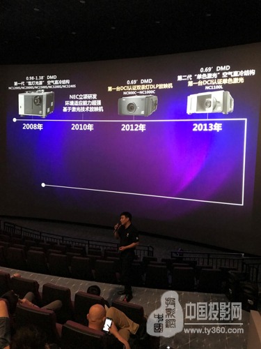 此次巡展主要展出了兩款產(chǎn)品,單色激光電影機NC1201L+和雙色激光電影機NC3541L+。其中,NC3541L+是今年NEC的主推產(chǎn)品,適用于大型影廳,播放幀率可達120Hz,動態(tài)畫面更為流暢、逼真。兩款產(chǎn)品均采用NEC激光數(shù)字電影機獨有的雙腔體防塵結構和CCT內循環(huán)冷卻專利技術, 防塵、散熱效果佳,有利于提高電影放映機的使用壽命,大幅度降低影院的維護成本。