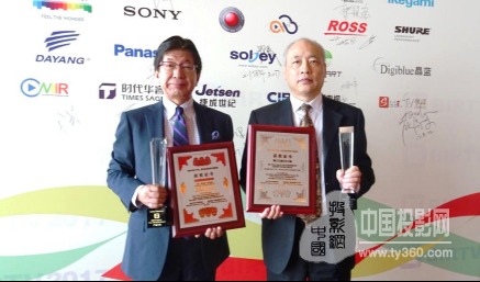 索尼中國專業系統集團總裁井手司治、技術總監王亞明上臺領取了獎杯和證書。