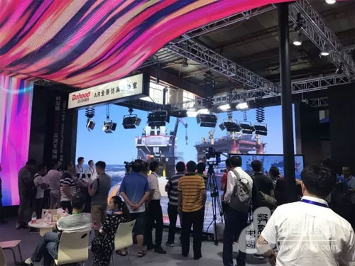 在利亞德集團的展臺,您看到是利亞德世界領先級的TWA1.2高清無縫拼接LED顯示墻,德火新媒體主打產品AR全景仿真演播室,應用在《阿凡達》《猩球崛起》等好萊塢大片中的美國NaturalPoint OptiTrack光學動作捕捉技術系統(tǒng)和金立翔彩磚 SEfl系列,彩晶 CYsn 系列創(chuàng)意顯示產品。