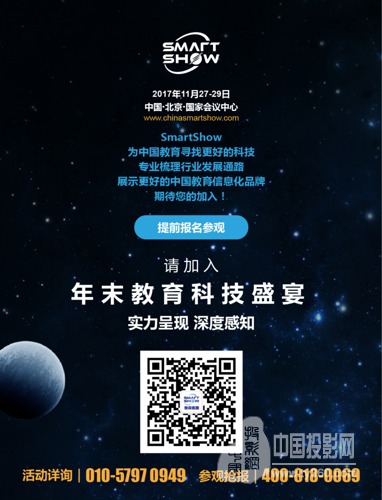 期待在年末11月27日~29日于北京•國家會議中心舉行的2017中國國際智慧教育展覽會期間,會有更多呈現(xiàn)未來教育改革趨勢的創(chuàng)新應(yīng)用展示。參觀熱線請撥打400-818-0069,活動訂展詳詢010-57970949。