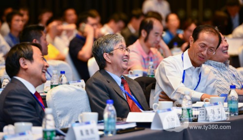2016中國國際OLED產(chǎn)業(yè)大會期間“OLED發(fā)明人”鄧青云博士(中)和與會嘉賓暢談
