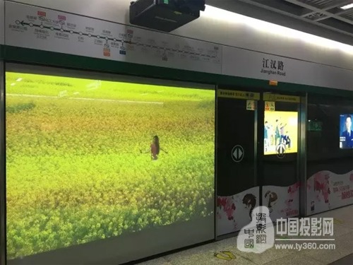 在漢江路站,一個站臺屏蔽門就這樣華麗麗的“變身”了,原本透明的鏡面玻璃瞬間變成了“顯示屏”,上演著武漢城市宣傳片視頻,而讓這個屏蔽門變身成功的正是DP高端激光工程投影機—E-Vision Laser 10K。