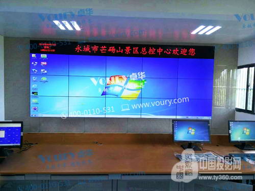 在河南省永城市芒碭山景區總控中心同樣選擇了Voury卓華液晶拼接屏,落成并投入使用,選用LCD拼接屏顯示尺寸為46寸,3×5 ,共計15塊液晶拼接屏構成,良好的顯示效果得到景區領導與專家的一致好評。