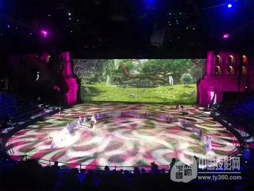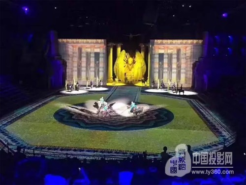 此次演出不但在藝術表現形式上融入了創新,舞臺配置也堪稱一流!270°環形看臺高度還原了古希臘劇場的設計。場內更有8個IMAX大小的屏幕,接近全覆蓋式的投影效果再創視覺體驗巔峰,松下工程投影機作為整場演出不可或缺的投影顯示設備,讓十三世紀的人神戰役得以恢弘再現!