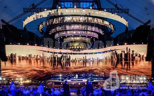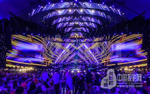 大型舞臺在舞美設計上對功能、技術、藝術要求比較高,一個完善的舞臺應包括:主臺、側臺、布景、舞臺結構、機械動力、燈光、音響、圖像處理等。根據不同的舞臺應用設計,TOP OF THE TOP Festival Sopot 2017采用弧形背景屏設計,與圓形舞臺及吊頂圓形屏相互呼應,配合絢麗的視頻素材,構造了一個立體及多元化的表演區。