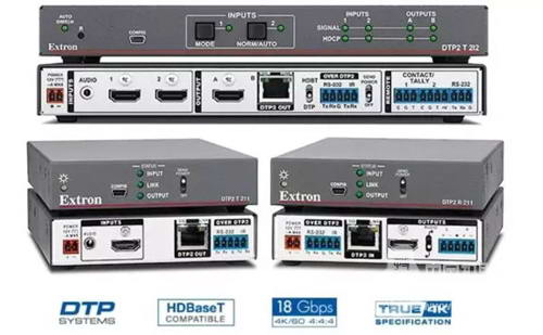 愛思創DTP2 系列雙絞線延長器支持 HDMI 2.0b 參數標準,以及高達 18 Gbps 的數據速率,支持分辨率高達 4K/60、 4:4:4 色度取樣的視頻信號。這些符合 HDCP 2.2 的產品也可用于 4K HDR 的分配。該系列產品包括 DTP2 T 211 發送器,DTP2 R 211 接收器,以及集成了 DTP2 發送器,帶獨立可分配本地 HDMI 輸出的 DTP2 T 212 切換器。 DTP2 系列設計用于通過單根 CATx 屏蔽電纜將 HDMI 和多通道音頻,以及雙向 RS-232 和紅外信號傳輸至 100 m (330') 遠的距離。其小巧的外殼尺寸與遠程供電功能相結合,使 DTP2 系列非常適合隱蔽地放置在講臺、桌下、平板顯示器后面或其他符合應用需求的空間。