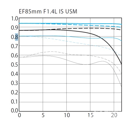 佳能EF 85mm f/1.4L IS USM鏡頭MTF曲線圖