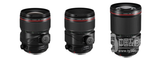 TS-E 50mm f/2.8L 微距、TS-E 90mm f/2.8L 微距、TS-E 135mm f/4L 微距(從左至右)