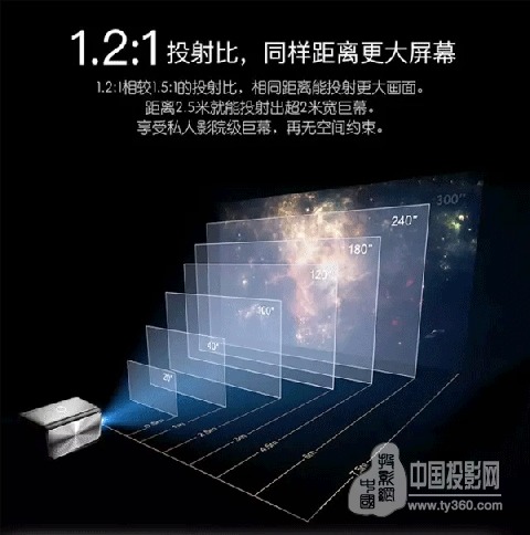 出色投射比更適合小戶型,在相同距離下投射更大畫面,享受大屏級私人影院,再也不用拘束于空間大小。