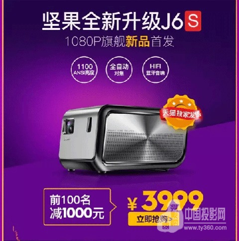 堅果年度旗艦1080P新品J6S,七大升級,大開眼界。堅果天貓歡聚日,9月19日10點準(zhǔn)點搶購,秒殺價低至3999元。