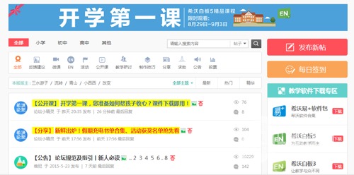 希沃學院論壇,匯集大量來自全國的一線教師,可以隨時隨地在論壇分享教學經驗、探討教學問題,暢所欲言。每個課程學習下方均有評課欄,通過寫評論,可以與全國各地老師分享學習心得。