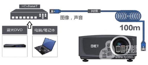 DET的4000~5500流明激光類工程機,含有HDBaseT的功能,能滿足工業計算機連接的所有挑戰:距離限制、線纜質量和成本、復雜安裝、延遲和交互性。HDBaseT能通過一根標準的100米/328英尺Cat5e/6電纜提供音視頻、以太網、控制信號、USB2.0和電源。