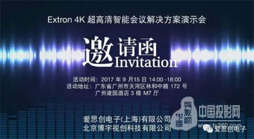 Extron 4K 超高清智能會議解決方案演示體驗會將于 9 月 15 日在廣州建國酒店舉辦,歡迎您屆時蒞臨參觀指導。