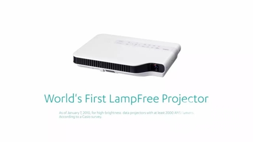 今天,全行業(yè)都在大談激光光源這樣的新光源技術(shù),因?yàn)樗咝Аh(huán)保、長壽命的巨大優(yōu)勢是作為投影機(jī)光源的不二之選。然而,業(yè)內(nèi)第一個推出新光源投影機(jī)的,正是卡西歐。2010年1月7日,卡西歐推出了世界上第一臺無燈泡的新光源投影機(jī),亮度達(dá)到了2000流明,拉開了投影機(jī)使用新光源的序幕。