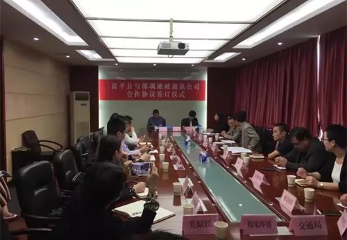 會議由富平縣人民政府副縣長范月麗主持,文物旅游局負責人介紹了富平縣與迪威視訊有關項目合作情況;迪威視訊副總裁劉一鳴先生做了發言;雙方簽約代表舉行了簽約儀式。