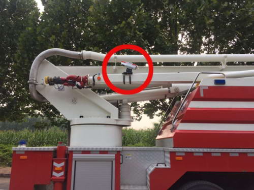 由于著火點和被困人員都位于建筑頂部,現場調配的登高車可升至101米的高度進行救援,為國內最高。華平登高車圖像終端就安裝在登高車的曲臂上,可以上升到著火樓層進行火情勘察,并解救頂樓被困人員,同時通過圖像終端將火情勘察畫面和人員解救全過程,傳送到現場指揮部和各級指揮中心,解決了高層建筑救援指揮過程中的視野盲區問題。