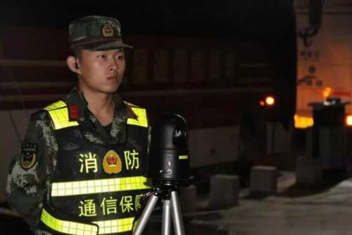 圖9:消防官兵與4G高清布控球一起駐守在固定點位
