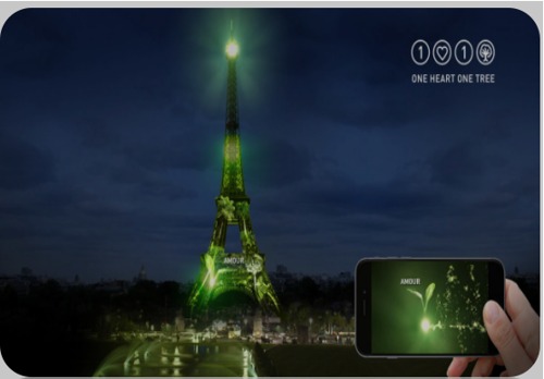 2015年11月,法國,巴黎,世界氣候大會,AVANZA帥映用激光工程投影機為埃菲爾鐵塔披綠裝
