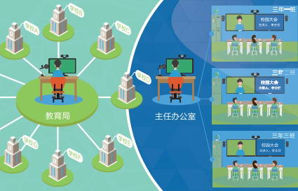 校園集控管理主要功能:設備集中管理、遠程監控管理、文本信息發布、音視頻直播、數據報表統計