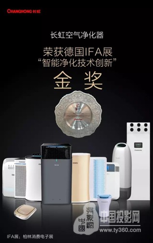 長虹空氣凈化器獲IFA“智能凈化技術創新”唯一金獎