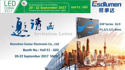 被業界公認為LED行業發展的“風向標”——上海國際LED展 ? LED CHINA 今年將于9月20至22日在上海浦東新國際博覽中心開展。該展會是全球創辦最早的專注于LED及LED照明領域的主題展,已連續8年吸引超過130個國家和地區的買家前來參觀采購。作為全球領先的LED顯示產品與解決方案提供商,深圳易事達電子有限公司將會“盛裝出席”這場科技展會,為廣大客戶帶來小間距系列最具技術領先優勢的LED顯示屏產品與解決方案