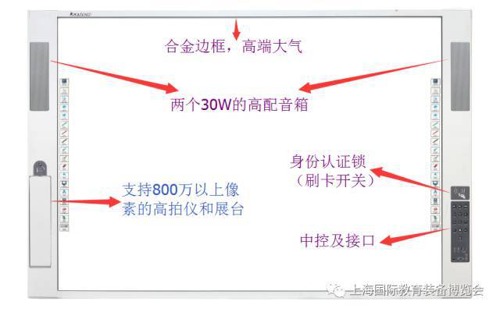 一體化設計:紅外電子白板、電腦、高拍儀或展臺、中控、功放音響、麥克風等功能模塊,集成在整個框架內,無外露連接線,非單側或雙側箱體連接式結構,由于一體化的設計理念使得各模塊間有更好的兼容性,避免傳統(tǒng)方案多種設備在施工現(xiàn)場無法兼容;