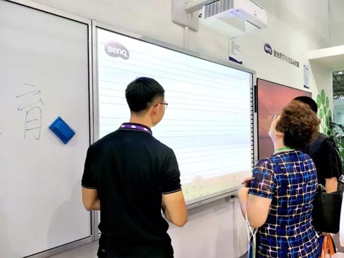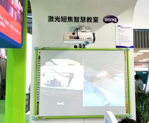 明基本次展出的激光超短焦交互式一體機解決方案A,以激光超短焦投影機LW83USTD、交互式一體化紅外電子白板、無塵環保書寫板三種設備為核心,可輔以軟件系統、功放音箱等一體化設備,搭建高度集成化的智慧課堂。