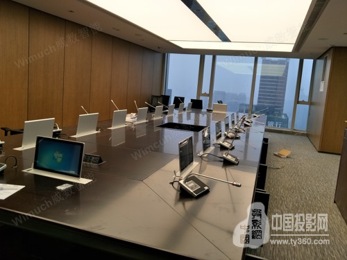 董事會議室會議桌選用18臺超薄鋒刃電容觸摸升降一體終端。整機采用超薄設計,寬度僅為73mm,表面使用5mm鋁拉絲細紋陽極氧化著色工藝處理,精致美觀;內側15.6”高分辨率(1920*1080)真彩數字液晶屏,液晶屏為電容屏多點觸摸式,查看及操作簡單、便捷,系統可支持無線鍵盤鼠標或手寫板。