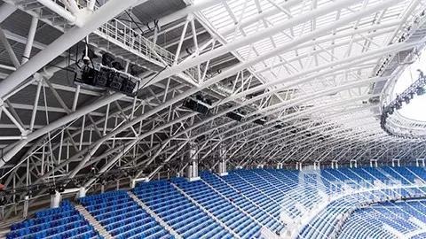 我國觀眾更習慣于燈火璀璨、流光溢彩的活動氛圍,這就要求現場特效燈光必須很多,同時為了滿足轉播與3D視覺要求,投影的畫面必須到達史無前例的高度300LUX。為了達到300LUX的亮度,每個投影區域的畫面都是通過4臺投影機從體育場兩側疊加投射去完成的,投影畫面的疊加完全是由投影機內部的校正功能實現。