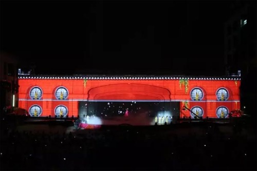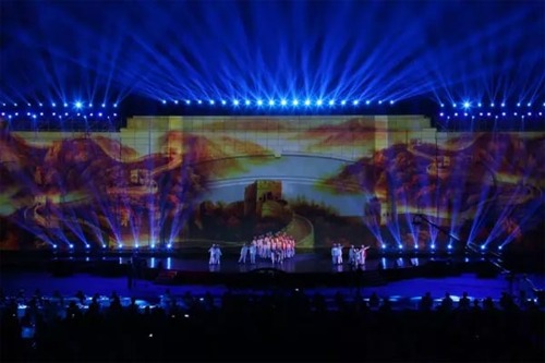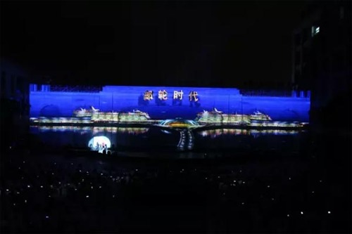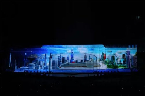 海上絲綢之路2000余年的文化傳承和歷史積淀,孕育出眾多廣為流傳的文化瑰寶。配合著以55米寬,14米高樓體為“幕布”的3D裸眼投影秀,現(xiàn)場觀眾欣賞了精彩絕倫的琵琶彈奏、歌曲演唱、芭蕾等節(jié)目,盡享科技與藝術(shù)、現(xiàn)代與傳統(tǒng)的完美結(jié)合。這是是中國首次舞臺墻體投影和燈光合為一體文藝晚會,也是自2014年以來上海首次舉行大面積墻體投影燈光秀。