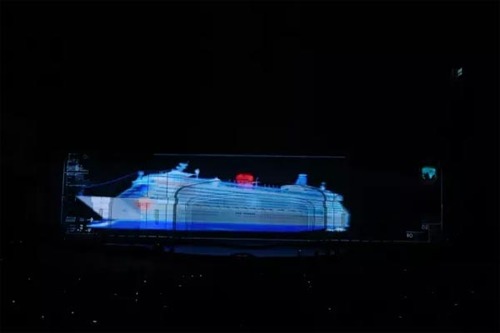 在提倡“勤儉辦演”的前提下,既要充分以技術(shù)創(chuàng)新營造以往人海戰(zhàn)術(shù)和大型道具的絢麗視覺效果,又要能完美呈現(xiàn)為“一帶一路”大背景下的郵輪文化所精心創(chuàng)作的表現(xiàn)內(nèi)容,讓更多市民體會到郵輪旅游的樂趣,并非一件易事。而勝任這一艱巨任務(wù)的除了現(xiàn)場導(dǎo)演和總包團隊,還有來自視覺影像專家——巴可的9臺投影機(5臺26,000流明HDF-W26投影機和4臺30,000流明HDF-W30 FLEX投影機)。