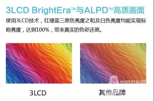 3LCD BrightEraTM給投影機(jī)提供了高色彩亮度,真實還原色彩,色階過渡自然,無色斑現(xiàn)象,紅綠藍(lán)三色液晶板精準(zhǔn)工作,有效避免色彩分離現(xiàn)象,色域范圍已經(jīng)達(dá)到甚至超出Rec 709標(biāo)準(zhǔn),所呈現(xiàn)的色彩已超出人眼所能識別的范圍。