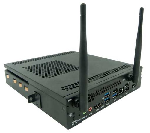 后置接口隱藏在交互平板的左后方,提供了RJ-45等多種類型的接口,可連接展臺、中控,攝像頭等等設備。產品提供了插拔式的OPS接口,用戶可根據自己的預算選擇不同規格的OPS。如果交互平板有了OPS,相當于內置了一臺電腦,能夠脫離外接設備直接教學。